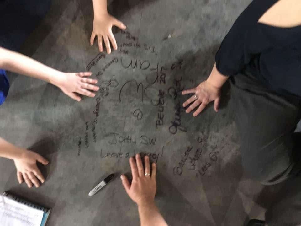 This week in my social media memories a picture came up that struck me. It was from January 22, 2017, the day we all went from the Sanctuary into the shell of what was to become Founder’s Hall. We went in at the end of worship and signed our names on the concrete floors, walls, and stage.