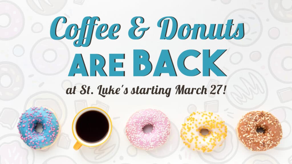 Dear St. Lukers, We are so excited that donuts and coffee fellowship is coming back this week! It’s been just over two years since we all gathered in the Rotunda after worship and listened to the buzz of conversation and...