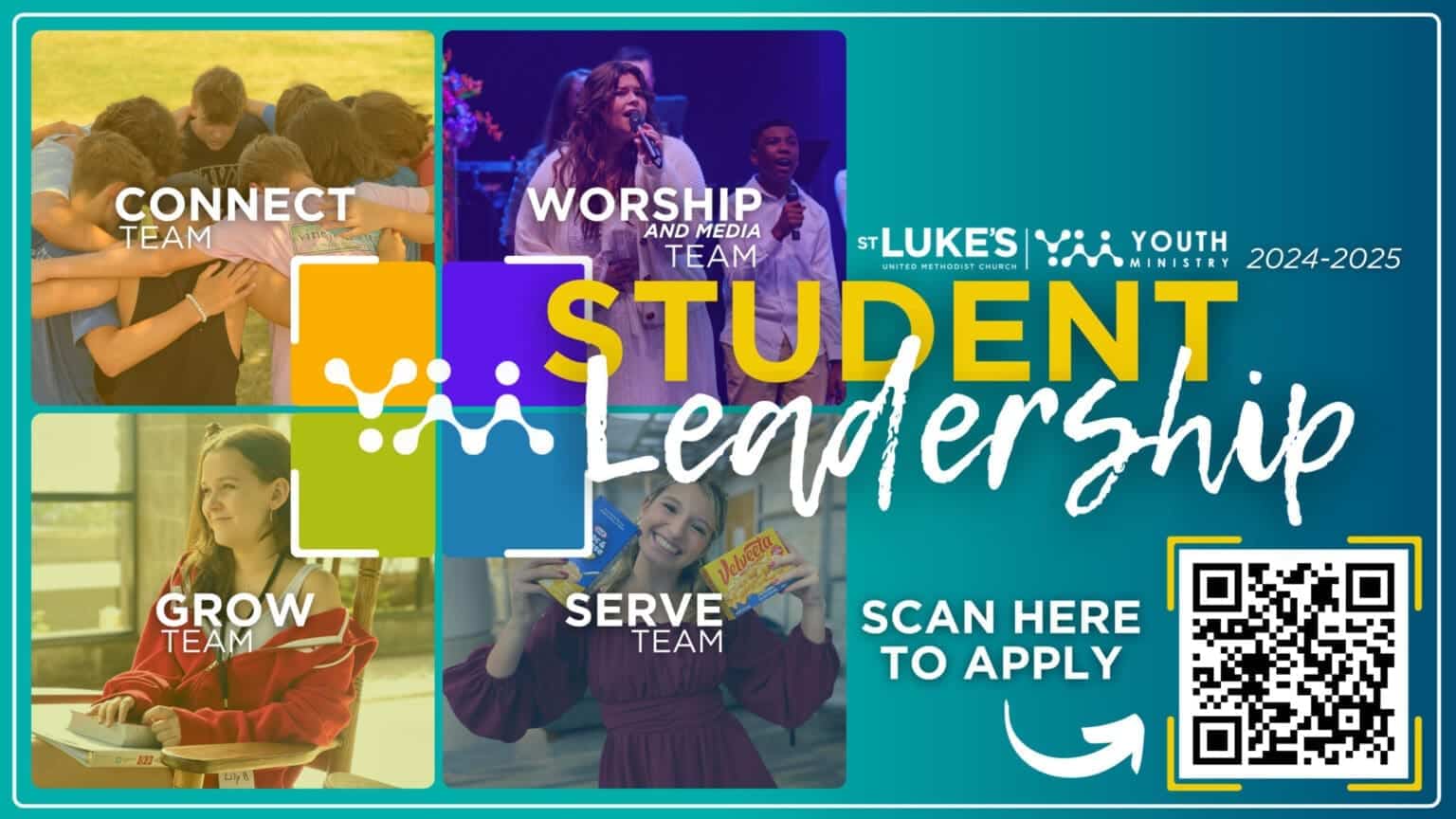 - The Application will also include the Spiritual Gifts Survey which will assist in leadership teams and captain selections. After reading thoroughly through the detailed info for each team, Click here for the St. Luke’s Youth Student Leadership Application.